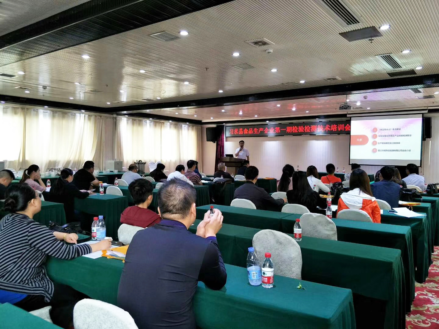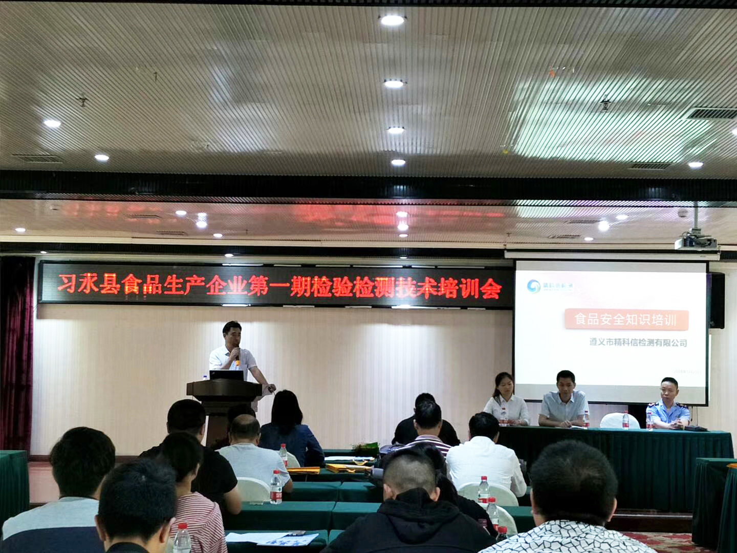 食品出廠檢測(cè)既是法律的規(guī)定,更是食品安全需要。為了提高企業(yè)食品質(zhì)量安全,規(guī)范和提高企業(yè)自身檢測(cè)能力,經(jīng)過一個(gè)多月的精心準(zhǔn)備,2018年05月25日至27日,習(xí)水縣食品生產(chǎn)企業(yè)第一期檢驗(yàn)檢測(cè)技術(shù)培訓(xùn)會(huì)在習(xí)水縣國富林酒店如期舉行。此次培訓(xùn)由遵義市精科信檢測(cè)有限公司做培訓(xùn)指導(dǎo),主要以現(xiàn)場操作為主,讓企業(yè)檢測(cè)人員能開展、會(huì)開展檢驗(yàn)檢測(cè)工作;理論講解為輔,針對(duì)企業(yè)如何規(guī)范管理、如何嚴(yán)把質(zhì)量關(guān)、如何改進(jìn)生產(chǎn)工藝等進(jìn)行了講解。